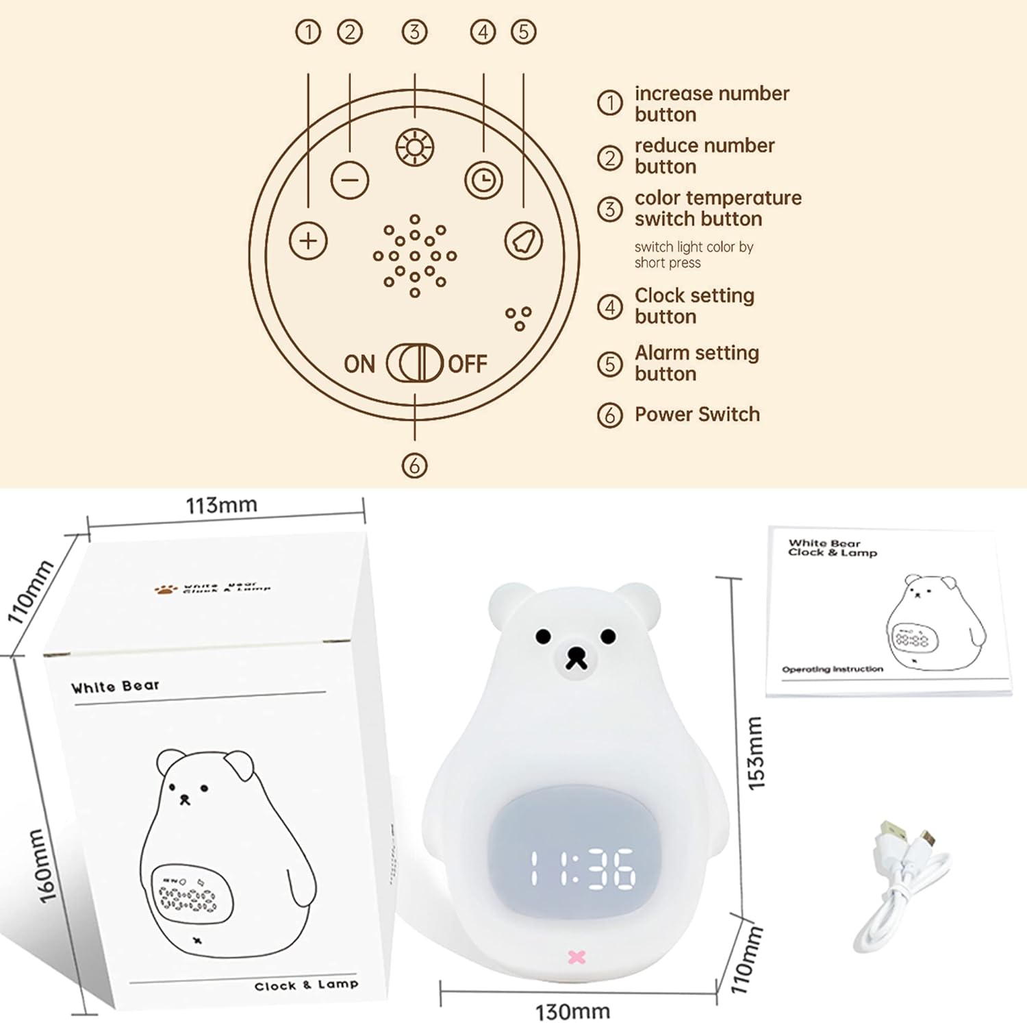 Bären Kinderwecker mit LED-Nachtlicht